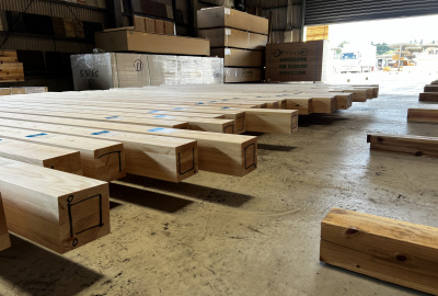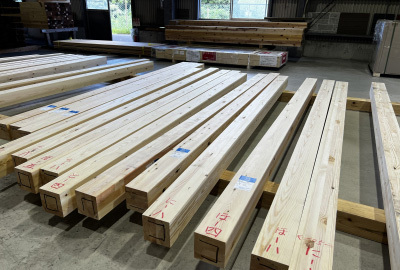 「番付」にて1本1本選び抜かれ、現場へと搬入された構造材たち。