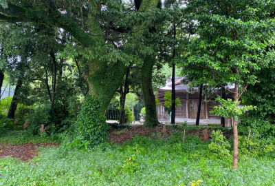 目の前の神社、瑞々しい緑が茂っています✨