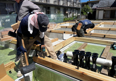 土台→大引きを敷き込み、きれいな碁盤目状に。