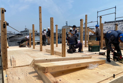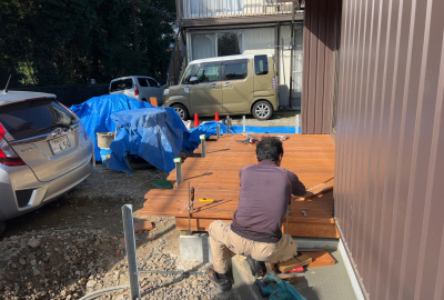 棟梁によるウッドデッキ製作も。