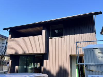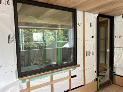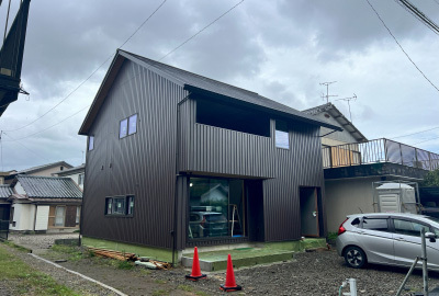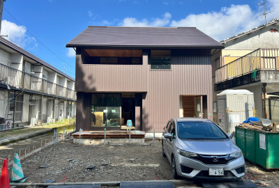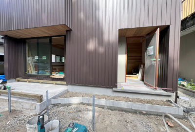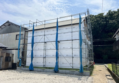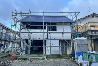 外壁張りを終えた「巡り住む家」。