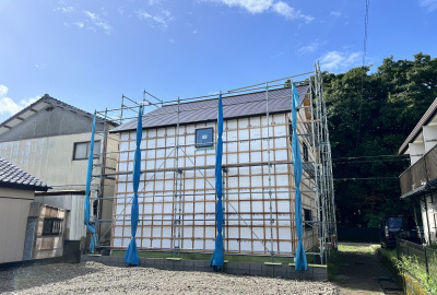 巡り住む家もついに外壁張りの段階。