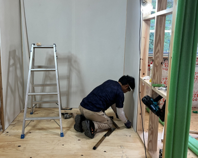 耐力面材の下地を整えていきます。