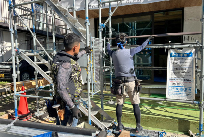 足場解体後には見えなくなる箇所は特に重点的にしっかりと。