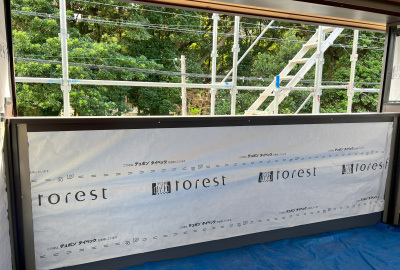 耐力壁を張り終えると、防湿シートで全体をしっかりと包みます。