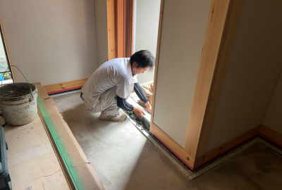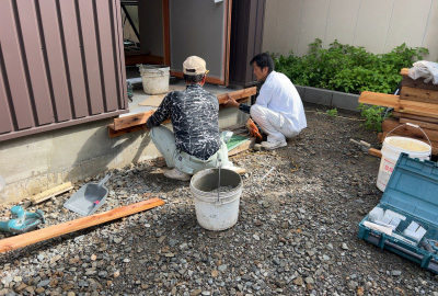 玄関の框や土間打ちを行い、