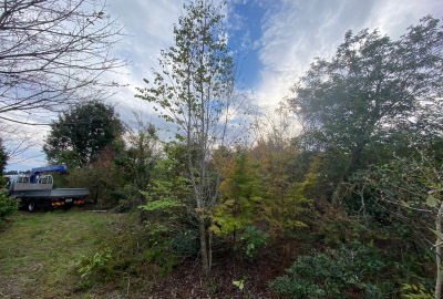 仮置きをしながら、配置、木の向きやバランスを整えながら植えていきます。