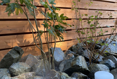 低木、石を並べて仕上げていきます。