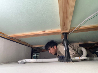 現場の指揮を執ったDさん自ら床下に潜り、全てに掃除機をかけていきます。