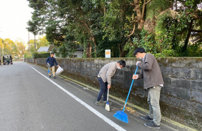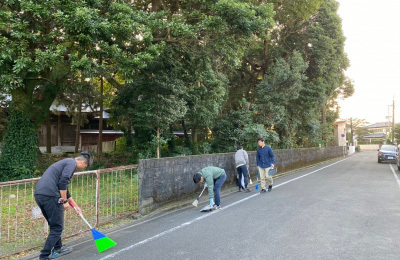 磨きは敷地外まで...工事期間中お世話になった近隣の皆さまに感謝の思いを込めて道路の清掃を行います。