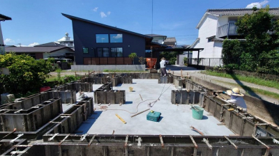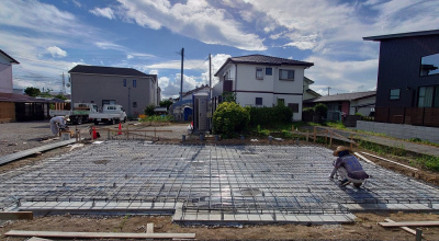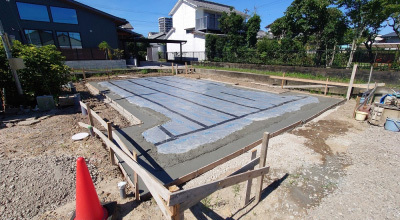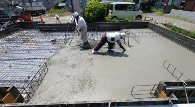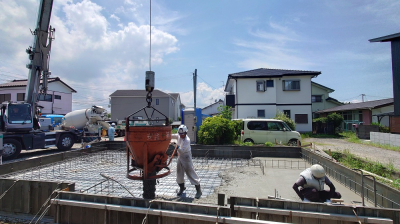 現場「恒久の家」は JIOによる配筋検査合格後、底盤部分のコンクリート打設を行いました!