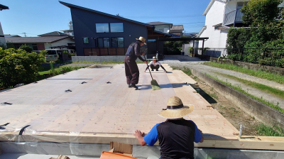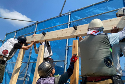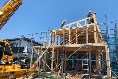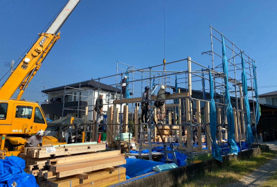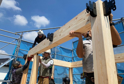 8月吉日、「恒久の家」の現場にて建て方工事を行いました。