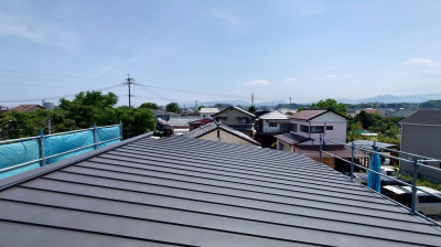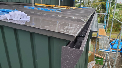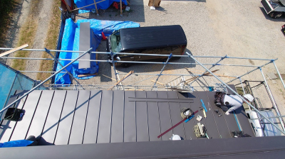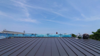 また、建物の最上部ではガルバリウム鋼板の屋根工事も完了しました!