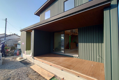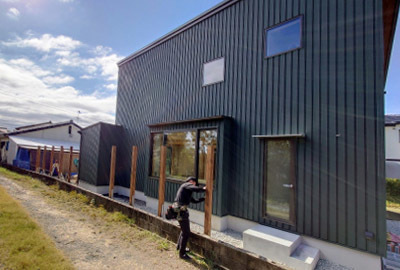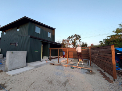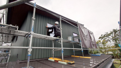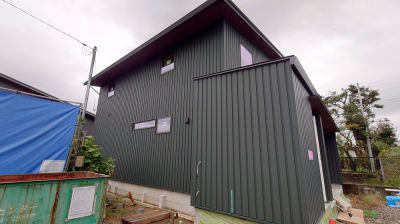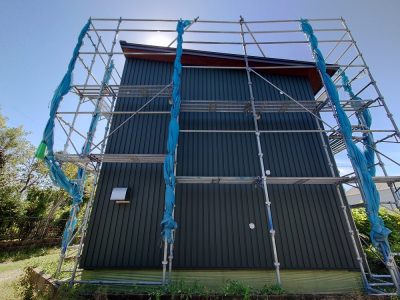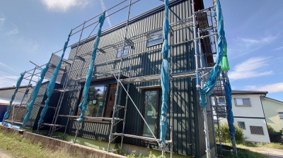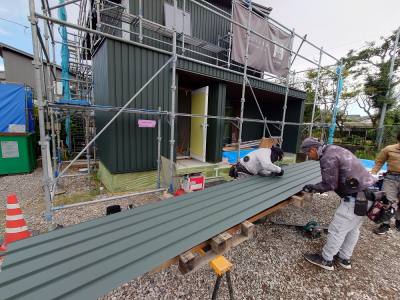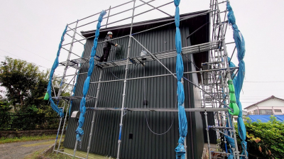 着々と工事が進む 現場「恒久の家」の外部では、 ガルバリウム鋼板による仕上げ工事が行われました☀