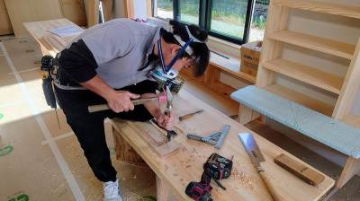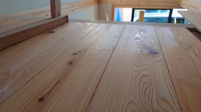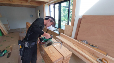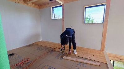 磨きで空間を整えたら、大工職人が内部の床仕上げに掛かりました。