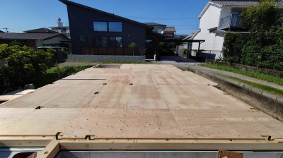 屋根工事、耐力面材施工が完了した 現場「恒久の家」は、 今後、第三者機関JIOによる構造検査へと進みます。