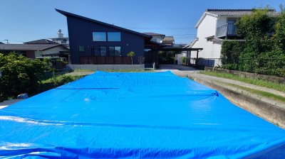 さらにその上から厚手のシートでラッピングをして2重の雨養生。