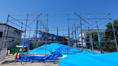 後日、仮設足場を設置して建て方工事前の事前準備はすべて完了しました。