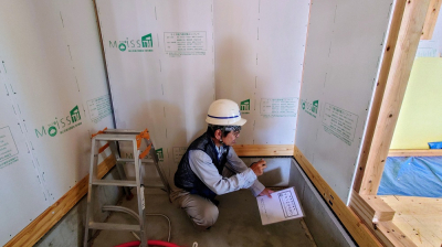 鉄筋を組みが完了したら、第三者機関JIOによる配筋検査が行われます。