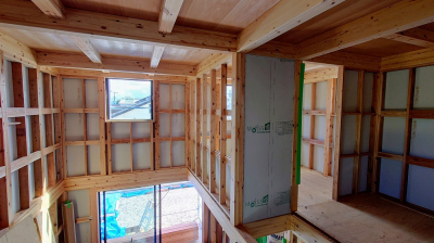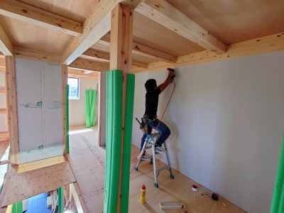 第三者機関JIOによる躯体検査合格後、 内部壁の仕上げ施工へと進みました!