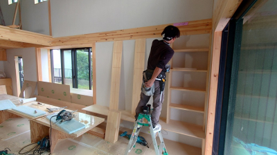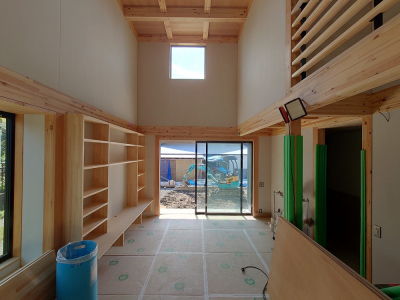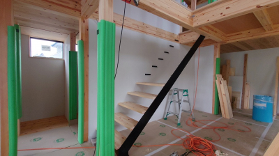 現場「恒久の家」は今後、内部の天井、床の仕上げ施工へと移ります。