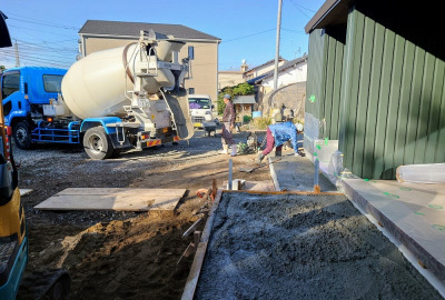 JIOによるお墨付きをいただいた後は、 いよいよ生コンクリートの打設です!
