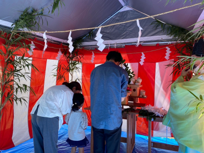 ご家族皆さま揃って玉串を奉天し、工事の安全を祈願いたします。