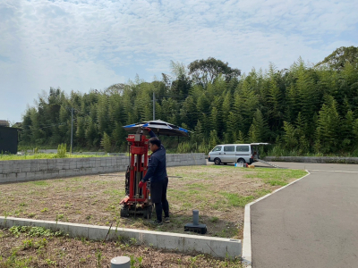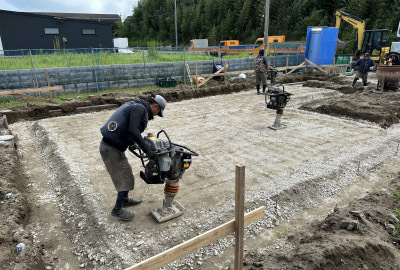 地盤調査結果に基づきダンピングランマーで入念に転圧。