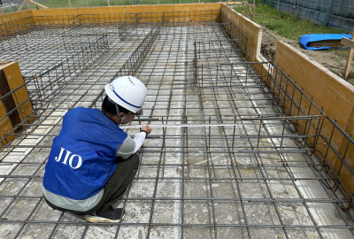 コンクリートを打設する前には第三者機関による配筋検査を実施。