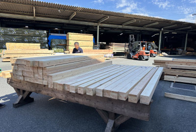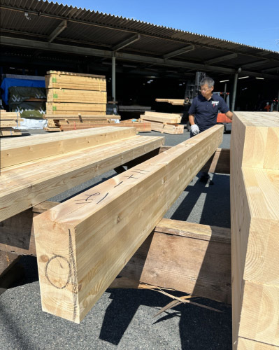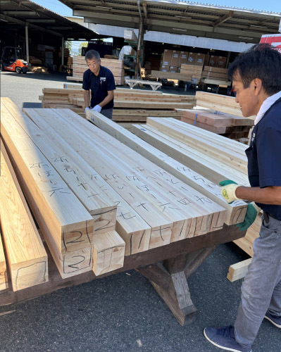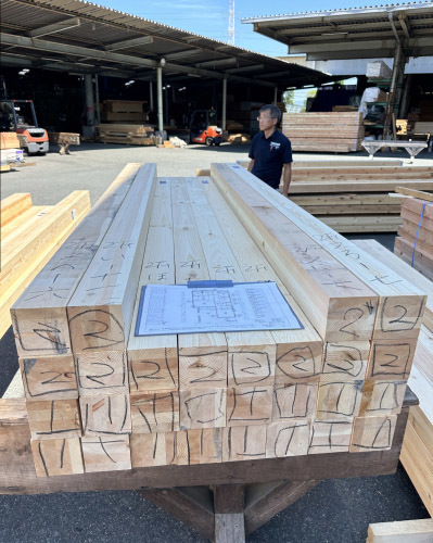 建物ができあがった後もリビングやキッチンなど各空間に存在するので 現場担当者自ら製材所にてじっくり時間をかけて選んできました。