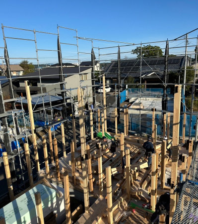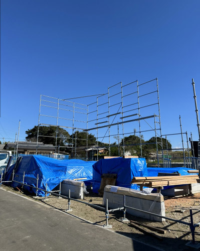 前日には足場が組み上がり いよいよ上棟へのカウントダウンが始まりました。