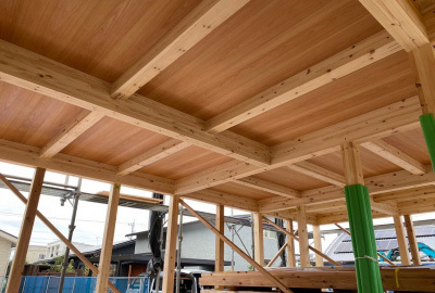 昨今の木造住宅は室内の壁や天井をビニールクロスで覆い 構造の柱や梁などを見せない『大壁』が一般的なのに対し
