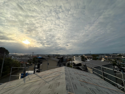 先ずは屋根からスタート。 洗浄だけではなく雨仕舞いなど施工状態も必ず確認します。 屋根からの景色は特別感が有りますね。