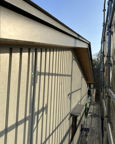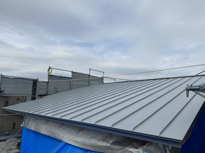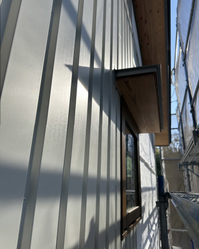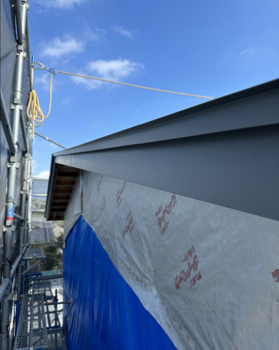 破風と呼ばれる屋根の側面もガルバリウム鋼板でしっかりと包み込みます。