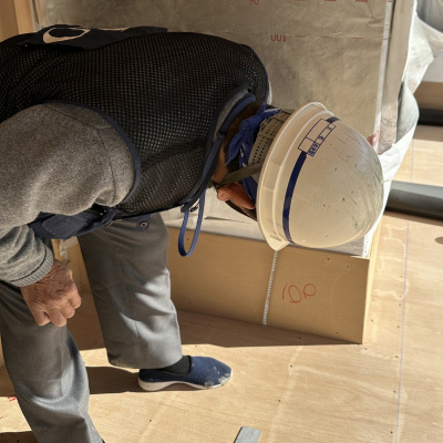 柱や梁に隙間なく貼る必要がある為、 仮合わせをしては何度も調整を繰り返します。