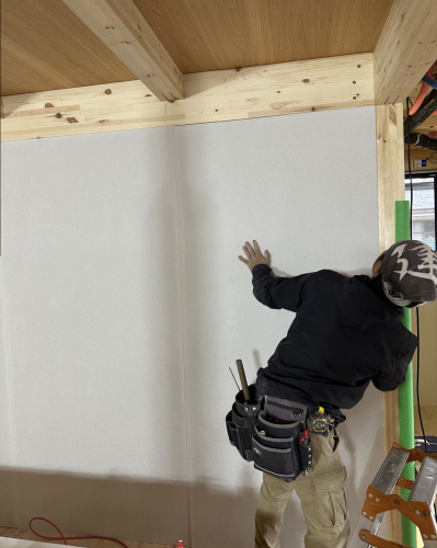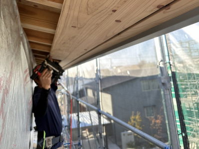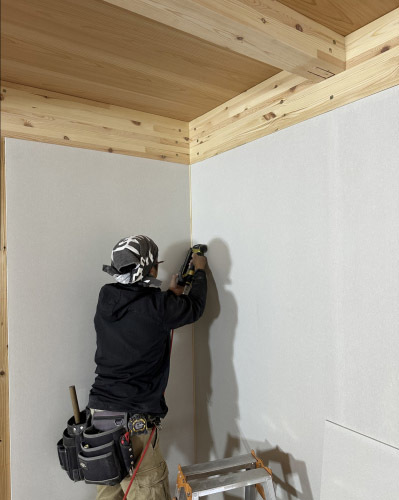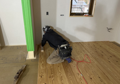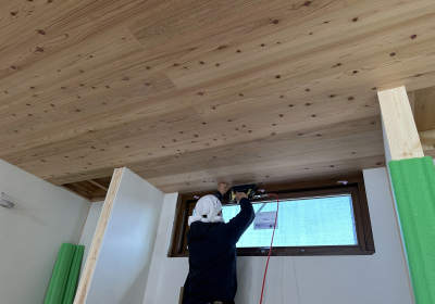 無垢の板を1枚ずつ丁寧に張り進めていくと、 木の家らしさが一気に加速します。
