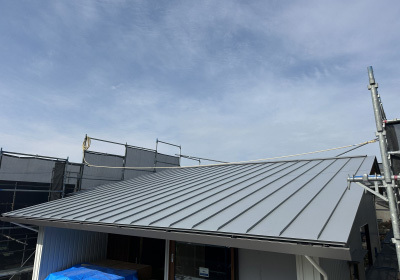 大屋根部分は立平葺きを採用し耐久性だけでなく、見た目もスタイリッシュに。