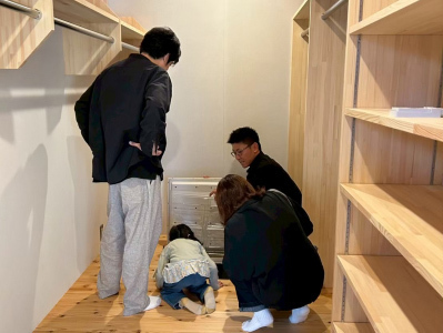 お引渡しの準備が整った室内にて、設備機器の取り扱いや 木の家の住まい方のポイントなどをご説明させていただきました。