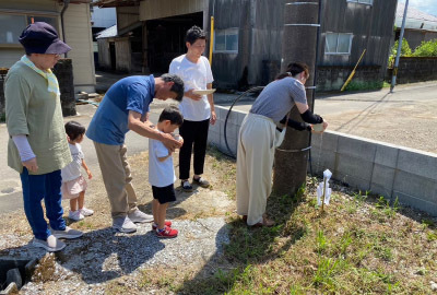 お子さまたちもおじいちゃんと一緒に四方のお清め。