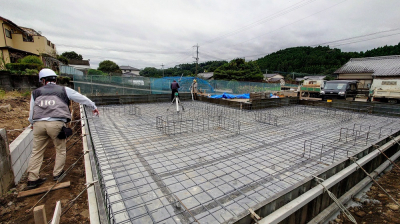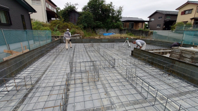 基礎鉄筋組み後は第三者機関JIOによる配筋検査が行われました。
