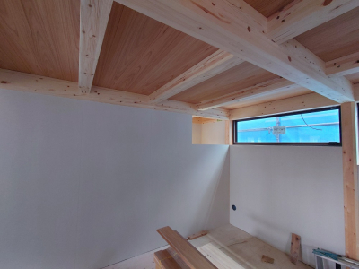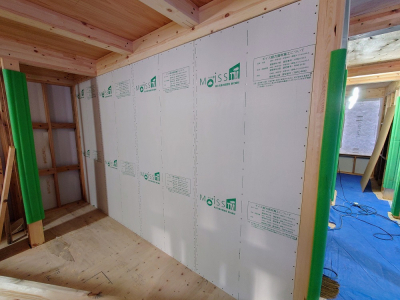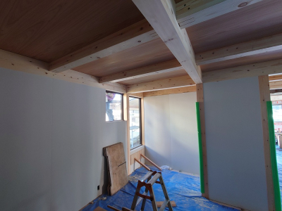 内部の耐力面材施工状況。