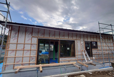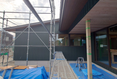 今後は内部の仕上げ工事と並行して外構工事の工程へと進みます。