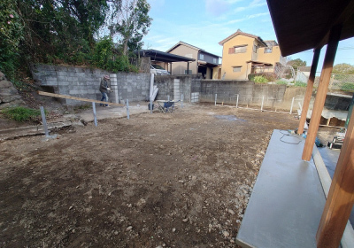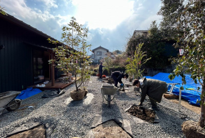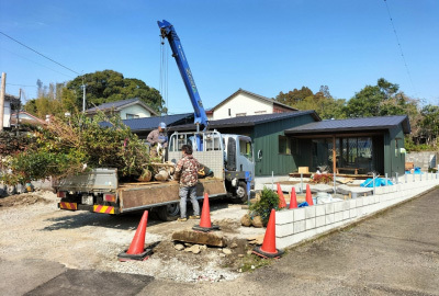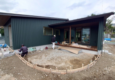外構工事が進む「二つ庭の家」