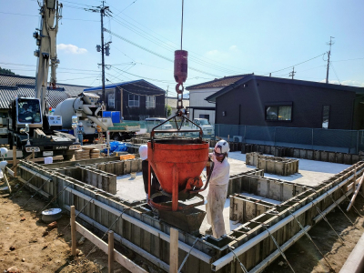 現場 「二つ庭の家」は 配筋検査合格後、コンクリート打設の工程へと進みました☀