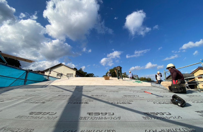 屋根工事は上棟後、最初の雨仕舞い工事となります。