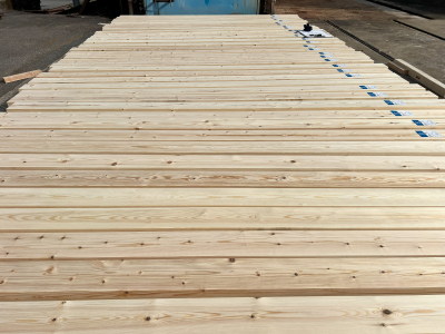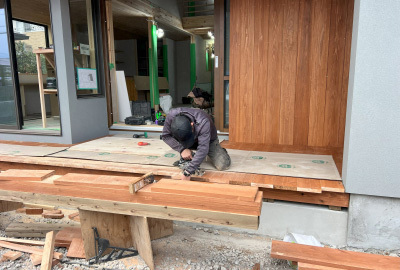 足触りの優しい杉の床板を採用したウッドデッキ製作
