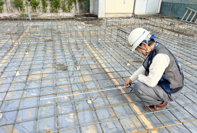 鉄筋の径や間隔・定着長さ、コンクリート被り厚さ等、 しっかりとチェックを行い、無事に適合判定を頂きました。