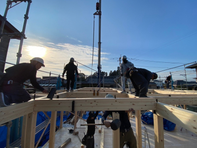 「N's HYGGE style」の現場にて建て方工事を行いました。