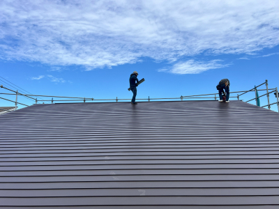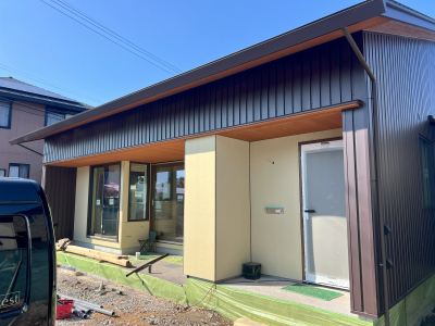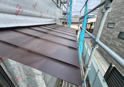 今回、濃茶色の意匠性の高い横葺き仕様を選定しました。