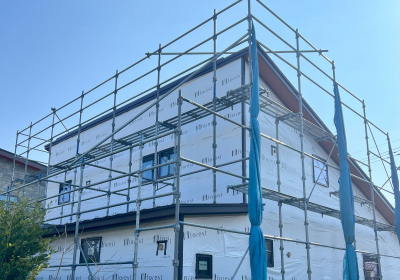 モイスTM取付後は、防水・透湿性に加え、遮熱性も高いシートで全体を包みます。